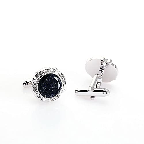 BagTu set di gemelli classici galaxy, set di gemelli rotondi blu scuro 2 pezzi con confezione regalo e biglietto di auguri per uomo