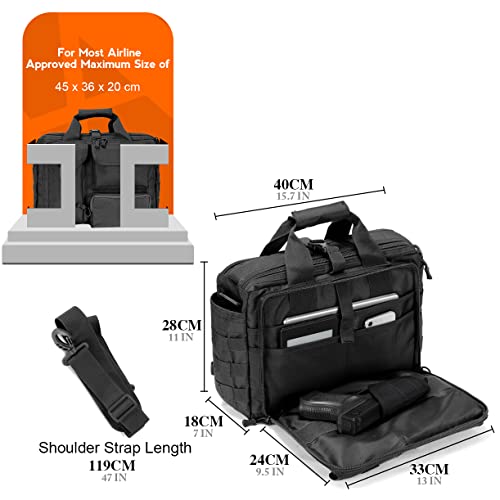 BAGZY Borsello Tattico Militare MOLLE Zaino Monospalla Tattico Borsa 24 Ore Borsa PC 15.6 Pollici 600D Oxford Multifunzione Computer Portatile della Cartella Borsa Lavoro Uomo (Nero)