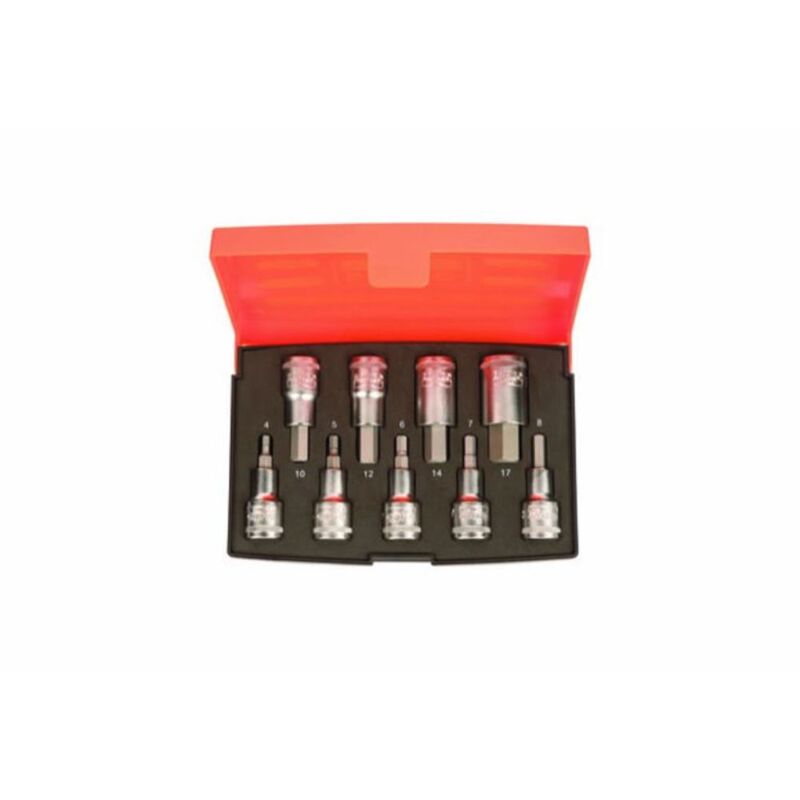 • Acciaio rapido ad alte prestazioni • Versione: opaco • 9 Inserti per cacciavite 1/2 per viti incastonati esagono: H4, H5, H6, H7, H8, H10, H11, H1, H8, H10, H12, H14, H17 • Default: ISO 1174 e DIN 3120 • Cassa di plastica 195x46x130 mm (numero di parte di ricambio Spar-Case A5)