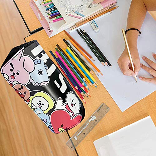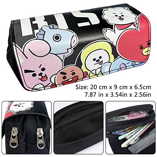 BAIBEI Astuccio per matite BTS, Astuccio a Doppio Strato, portapenne, per Studenti e Adolescenti, con Scomparti per Cosmetici, Trucchi, 20x9x6.5cm, Nero