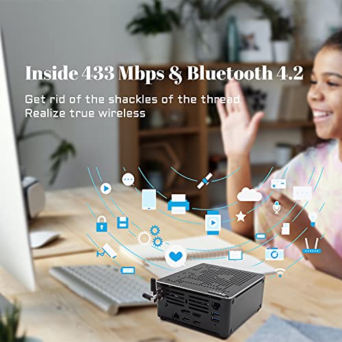 ✈WiFi dual-band e BT 4.2: il mini PC è dotato di WiFi dual-band 2.4/5.0G e BT 4.2, con una maggiore capacità anti-interferenza e un segnale wireless più stabile. Supporta le funzioni di accensione e riattivazione automatiche WOLRTC, il TDP è di 45 W, il normale lavoro d'ufficio ogni giorno e il costo di un computer può essere risparmiato i