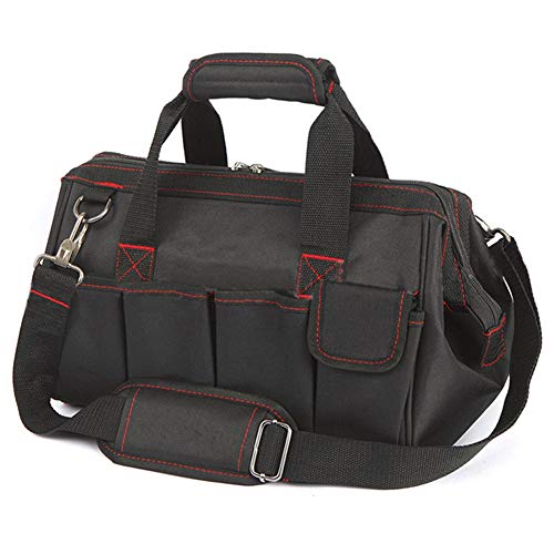 BAIGIO Borsa Porta Attrezzi Elettricista Professionale con Tappetini di Gomma,Tracolla,Maneggiare,12inch Doppio Strato Impermeabile Ispessimento 600d Oxford Tela (Nero)