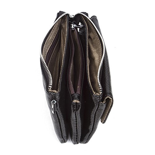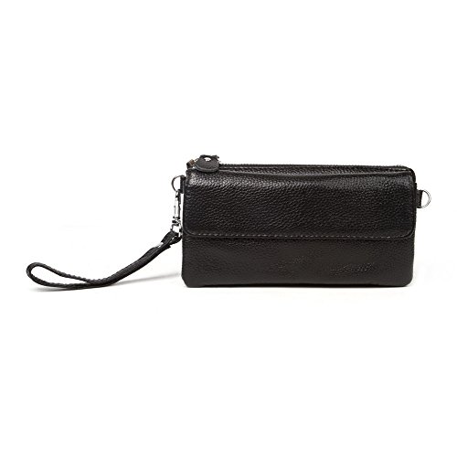 BAIGIO Pochette in Vera Pelle da Uomo Donna Porta Cellulare Carte Documenti Portafoglio Borsello Pratico, Nero