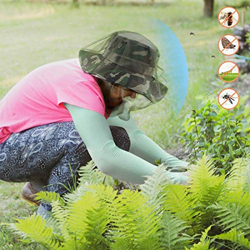 Design elastico: il design del collo elasticizzato rende il cappello con zanzariera facile da indossare e da togliere, tessuto verde scuro non a rete sulla parte superiore della testa