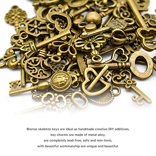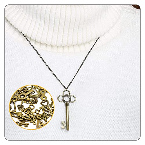 Bailinks Set di 50 ciondoli a forma di chiave vintage in bronzo antico, accessori decorativi fatti a mano, per collane, bracciali, gioielli fai da te