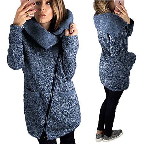 BAINASIQI Felpa con Cappuccio da Donna Inverno Elegante Chiusura a cerniera asimmetrica manica lunga Felpa Giacca Casual Cappotto Maglione (M, Blu)