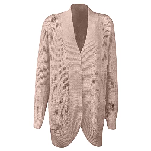 BAInuai Cardigan da donna, elegante cardigan, a maniche lunghe, con tasche, casual, Khaki-9., S