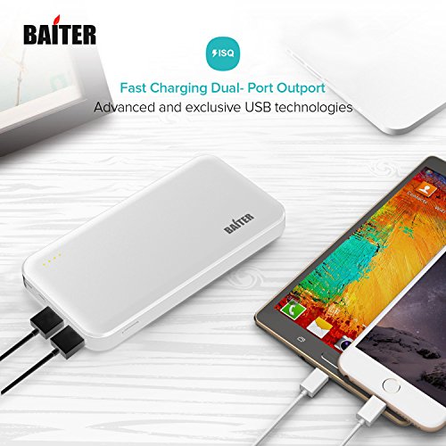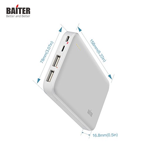 BAITER Blockbuster Italia Progettato Solo un cavo di alimentazione 13400mAh Bank-- Con Porte di uscita doppia e due porte di ingresso (Fulmine + micro USB) per iPhone, iPad, Samsung, Kindle, altoparlanti, tablet e cellulari bianca