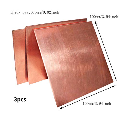 BAIWANLIN 3 Pezzi T2 Puro Rame Piastra Sheet Lastra Foglio Lamiera Cu Foil Raffreddamento Saldare,0.5mm*100mm*100mm