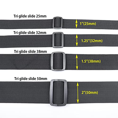 BAIWOAK Cursore a tri scorrevoli 25mm In Plastica Forte Tri Glide Scorrevoli Regolabile Fibbia Scorrevole Cinghia Cursori Regolatori per Zaino Cintura Cinghia Nero