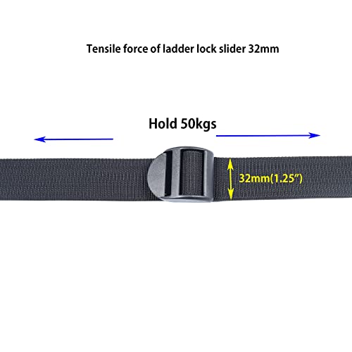 BAIWOAK Scorrimento per scaletta, 20 mm, 25 mm, 32 mm, 38 mm, 50 mm, in plastica per scaletta, chiusura regolabile, per zaino, tessitura, cinghie, borse, Nero