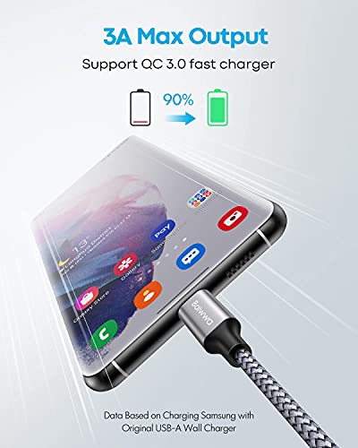 Baiwwa Cavo Type-C 1.5m 2Pezzi, Nylon Intrecciato Cavo USB C Ricarica Rapida 3A Cavi per Samsung Galaxy S21 S20 S22 S9 S10 S8 S23 Plus, A20e A50 A51 A70 A71 A53 A11 A13, Pixel, Xperia, LG -Grigio