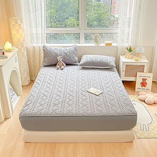 ★ Lenzuolo con angoli per letto matrimoniale: include 1 lenzuolo con angoli per letto matrimoniale (90 x 200 cm + 30 cm grigio), coprimaterasso trapuntato, dotato di elastico tutto intorno per tenerlo in posizione tutta la notte.