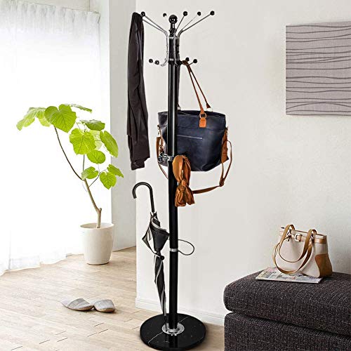 BAKAJI Attaccapanni Appendiabiti di Design a Piantana da Terra in Metallo con 16 Ganci Appendi Abiti Base in Marmo Dimensione 38 x 38 x 180 cm (Nero)