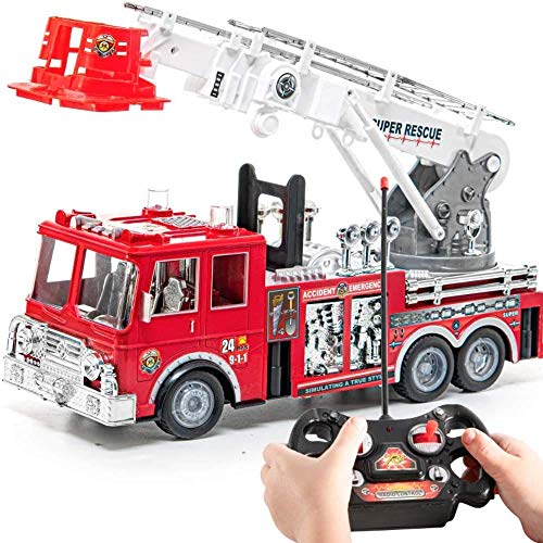 Il perfetto camion dei pompieri radiocomandato, grande ben 33 cm curato nei minimi dettagli con braccio e scala di salvataggio estendibile e girevole a 360 gradi manualmente per raggiungere gli incendi più alti!