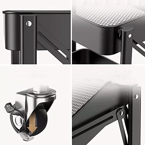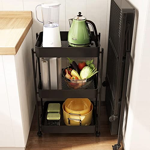 BAKAJI Carrello Cucina Pieghevole con 3 Ripiani Cestelli 4 Ruote girevoli a 360 Gradi con Freno Integrato in Metallo Trolley Salvaspazio da Servizio Dimensioni 29 x 40 x 76 cm (Nero)