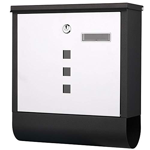 Bakaji Cassetta Postale in Acciaio Inox da Parete Buca Lettere per Posta da Esterno con Chiusura Chiave e Porta Giornale (Bianco Nero)