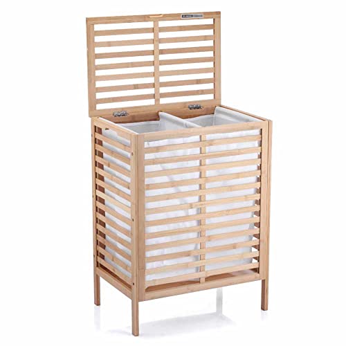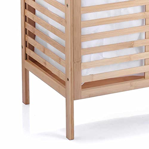 Bakaji Cesto Biancheria Sporca in Bambu Con Tessuto Grigio Portabiancheria Casa Bagno Con 2 Scomparti Contenitore Salvaspazio con Coperchio e Sacco Estraibile (53 x 35 x 71 cm)