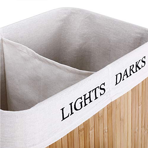 Bakaji Cesto Biancheria Sporca a Doppio Scomparto Portabiancheria 2 Spazi di Bambù e Tessuto Capacità 100 Lt - 52 x 32 x 63 cm