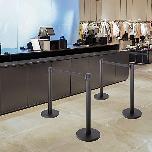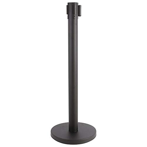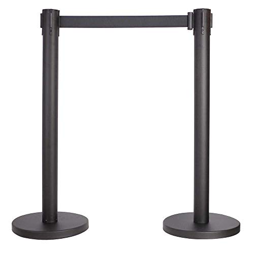 Bakaji Set 2 Colonnine Segnapercorso con Nastro 2mt Colinnina Colonna Palo in Metallo Segna Fila Separacode Base Rotonda Contrappeso in Cemento Altezza 90cm Colore Nero