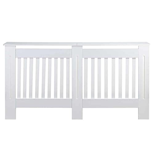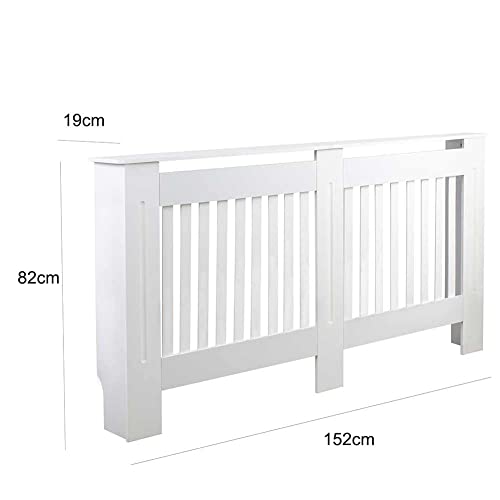 BAKAJI Copritermosifone in Legno MDF 152 x 19 x H82 cm Copertura Radiatore Calorifero Cover Copri Termosifone con Mensola Ripiano Superiore e Decorazione a Listelli Verticali Design Moderno Bianco