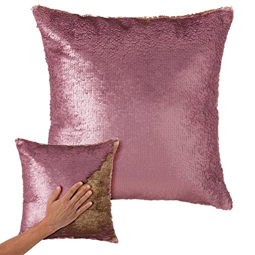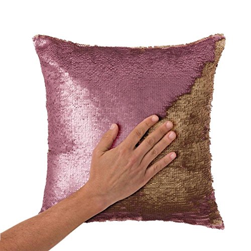 BAKAJI Cuscino Paillettes Federa Effetto Sirena Doppio Colore Rosa Gold 40x40cm Divano Sofà Poltrona Cuscini Confort in Tessuto