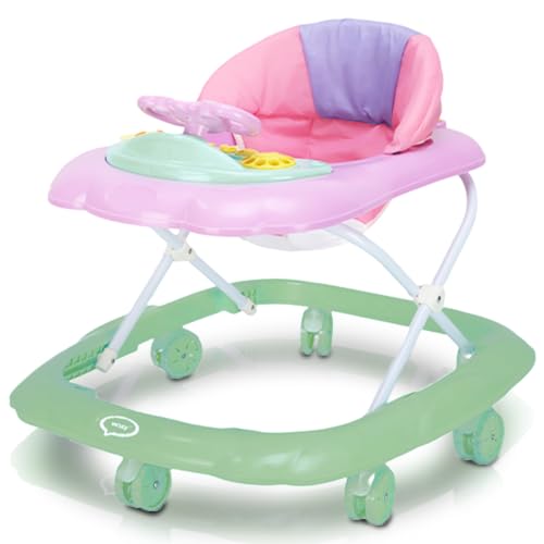 Interattivo e sicuro, il girello è pensato per adattarsi perfettamente ai bambini di diverse altezze perchè tocchino sempre per terra con i piedi.