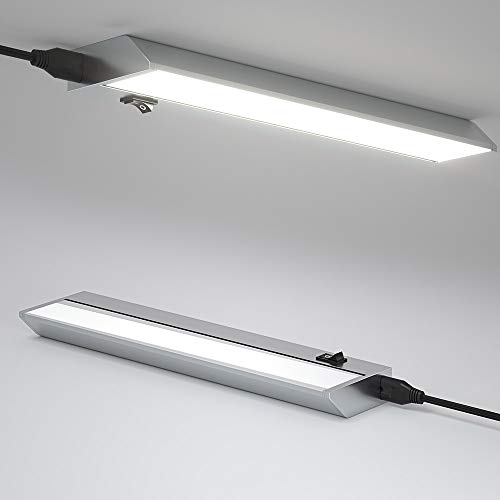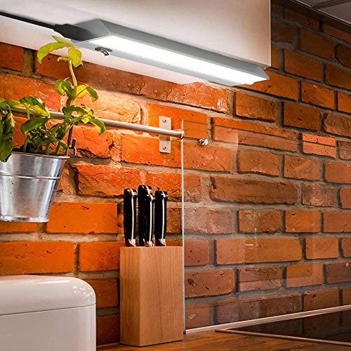 BAKAJI Lampada Luce Sottopensile Cucina Lunghezza 35 cm Barra 30 LED 5W Bianco Naturale 4000K Alta Luminosità 370LM Faretto Slim Sotto pensile per Mobili in Alluminio con Paralume Orientabile