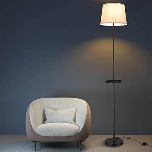 BAKAJI Lampada Piantana da Terra Luce Lampadina E27 Max 60W Base Rotonda Struttura in Metallo Paralume in Tessuto Design Moderno Accensione a Pedale Altezza 174 cm (Nero con Tavolino)