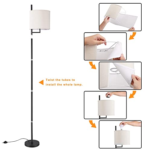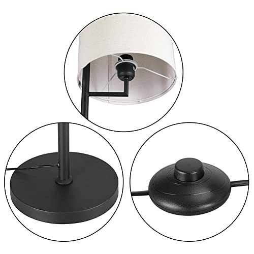 BAKAJI Lampada Piantana da Terra Luce Lampadina E27 Max 60W Base Rotonda Struttura in Metallo Paralume in Tessuto Design Moderno Accensione a Pedale Altezza 178 cm (Nero)