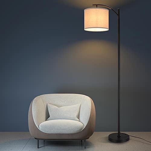 Bakaji Lampada Piantana da Terra Luce Lampadina E27 Max 60W Base Rotonda Struttura in Metallo Paralume in Tessuto Design Moderno Accensione a Pedale Altezza 160 cm (Nero)