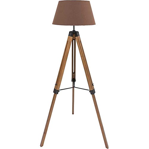 Bakaji Lampada da Terra Regolabile con Base Treppiede in Legno Lampada a Piantana da Lettura Design Moderno con Paralume Faro in Tessuto Lampadine E27 Altezza 145 cm (Marrone Stile Nordico)