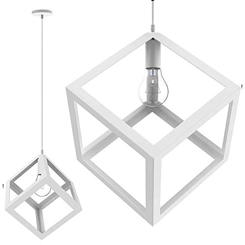 BAKAJI Lampadario Lampada a Sospensione da Soffitto Cubo 23cm in Metallo Design Moderno Portalampada Attacco E27 Lampadina Max 40W Illuminazione Arredamento Casa con Kit Montaggio Incluso (Bianco)
