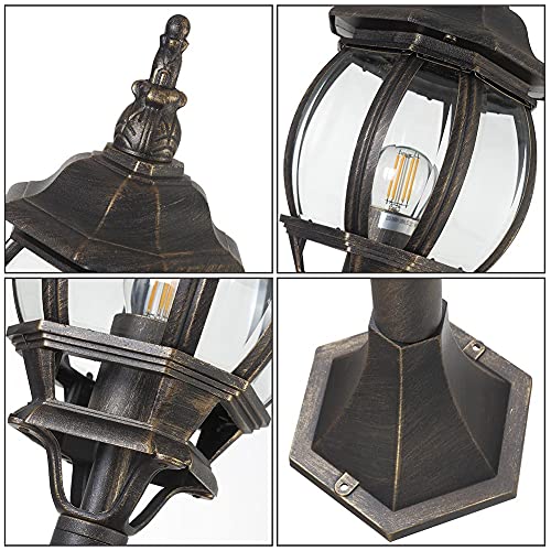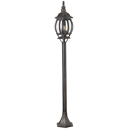 BAKAJI Lampione Vittoriano Classico da Giardino in Alluminio Lampada Lanterna Colore Grigio Finitura Anticata Color Ottone IP44 E27 (1 Luce 108 cm)