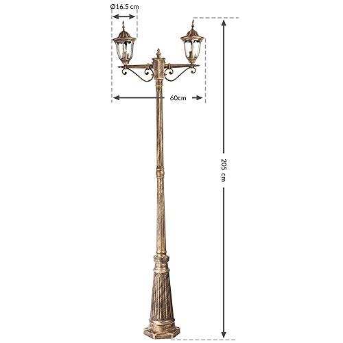 BAKAJI Lampione Vittoriano Classico da Giardino in Alluminio e Vetro Lampada Lanterna Esagonale Colore Bronzo Finitura Anticata IP44 E27 (2 Luci 200 cm)