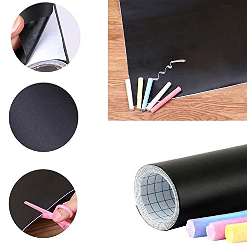 Bakaji Lavagna Nera in Rotolo Adesiva in PVC + Set Gessetti Dimensione 145 x 45 cm Pellicola Lavagnetta Multiuso Ritagliabile Decorazione Parete Casa Cameretta Bambini Ufficio