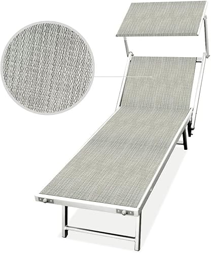 BAKAJI Lettino Prendisole Pieghevole da mare Stabilimento Spiaggia Professionale in Alluminio e tessuto textilene Sdraio Mare Spiaggia Piscina con Parasole 185 x 71,5 x 41 cm (Grigio Melange)