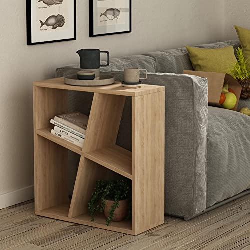 BAKAJI Libreria Bassa Scaffale 4 Ripiani in Legno MDF Tavolino Caffè Laterale Divano Design Moderno Arredamento per Soggiorno Salotto Casa o Ufficio Dimensione 60 x 22 x 55 cm (Quercia)