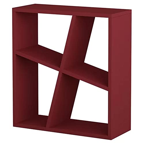 BAKAJI Libreria Bassa Scaffale 4 Ripiani in Legno MDF Tavolino Caffè Laterale Divano Design Moderno Arredamento per Soggiorno Salotto Casa o Ufficio Dimensione 60 x 22 x 55 cm (Red)