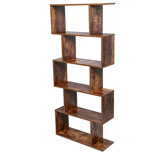 BAKAJI Libreria Scaffale 6 Ripiani in Legno MDF Design Zig Zag Moderno Industriale per Soggiorno Salotto Casa o Ufficio Dimensioni: 159 x 70 x 24 cm