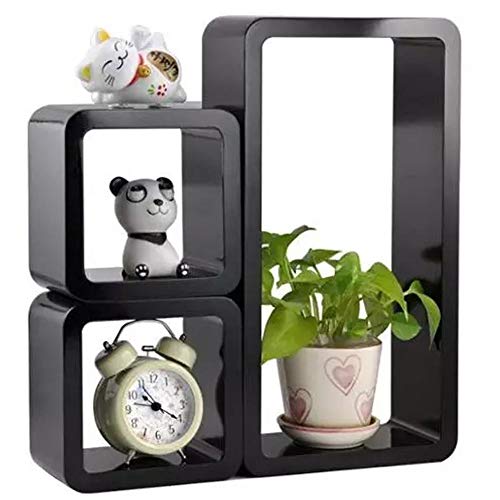 BAKAJI Set 3 Mensole da Parete Moderne Design Rettangolare e Cubo Mensola Scaffale 2 Ripiano in Legno MDF Varie Dimensioni (Nero)