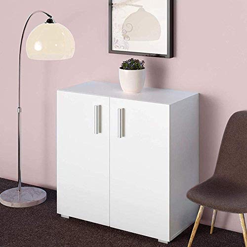 BAKAJI Mobile Madia con Doppia Anta e 2 Ripiani Interni Mobiletto Credenza Armadio Multiuso Cucina Bagno Ufficio Design Moderno in Legno MDF Dimensione 77 x 31 x 60 cm (Bianco)