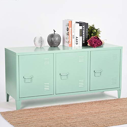 BAKAJI Mobile Mobiletto TV in Metallo Credenza con Base Televisione 3 Ante Doppio Scomparto Dimensione 40 x 120 x 58 cm Design Moderno (Verde)
