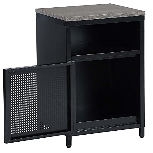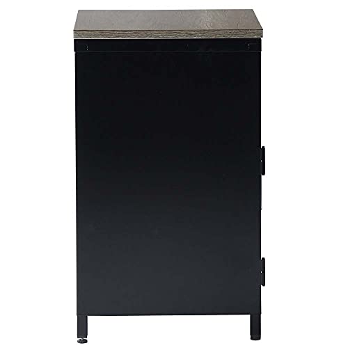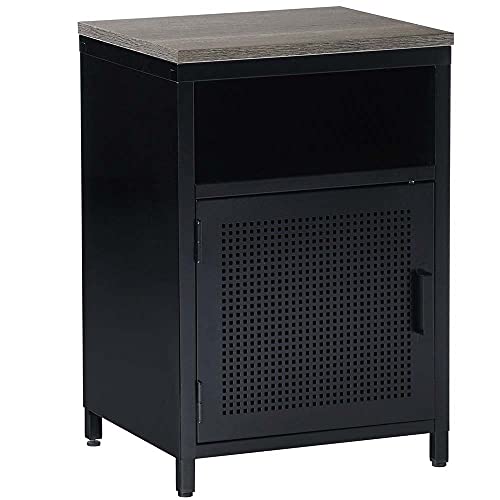BAKAJI Mobiletto Armadietto Comodino in Metallo e Legno MDF 2 Ripiani Interni Chiusura ad Anta Decorazione Traforata Mobile Arredamento Casa Ufficio Design Moderno Industriale 56 x 39 x 35 cm