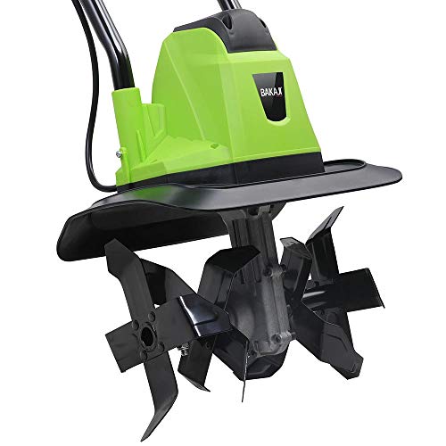 BAKAJI Motozappa per Orto Elettrozappa Potenza 750W Zappatrice Zappa a Motore Elettrica 4 Lame da 20cm Larghezza Lavoro 32cm velocità 380 RPM con Manico Ergonomico Coltivazione Giardino