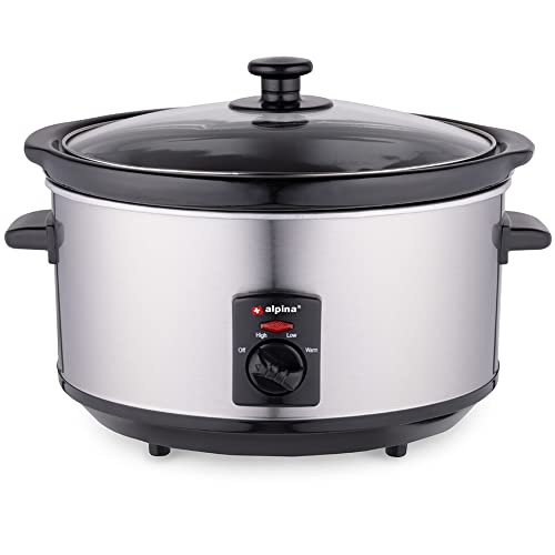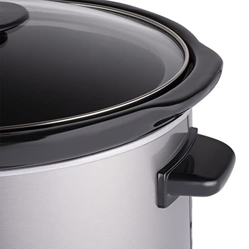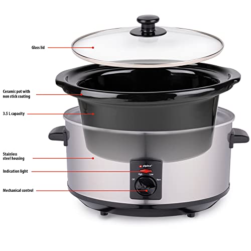 BAKAJI Pentola Slow Cooker Elettrica Ovale per Cottura Lenta a Bassa Temperatura, Capienza 3,5L in Acciaio e Ceramica Antiaderente, Potenza 240 W, Maniglie Termoisolate, Coperchio in Vetro Temperato