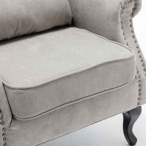 BAKAJI Poltrona Sedia Relax Rivestimento in Tessuto Lino Struttura in Legno 4 Gambe Imbottita Design Moderno Provenzale Decorazione Trapuntata Ampio Schienale Dimensione 79 x 78 x 87 cm (Grigio)