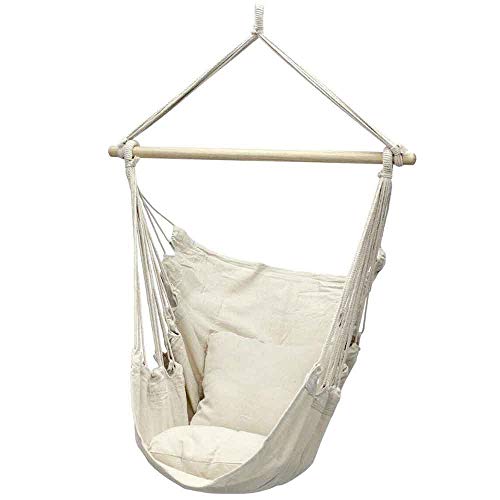 Bakaji Poltrona Sospesa da Esterno Giardino in Tessuto Sedia Dondolo Pensile Amaca Terrazzo Campeggio con Staffa in legno + 2 Cuscini Design Moderno Portata 120Kg 120 x 90 x 60 cm (Beige)