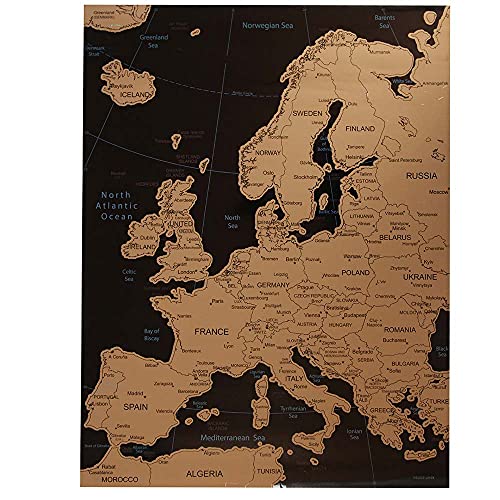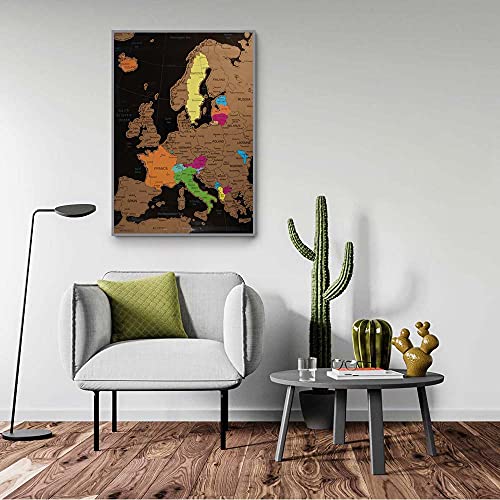 Bakaji Poster Mappa Europa da Grattare Mappamondo Cartina Geografica Europea Scratch Off Dimensione 70 x 54 cm da Parete Muro Design Moderno Custodia Cilindro e Lima Idea Regalo