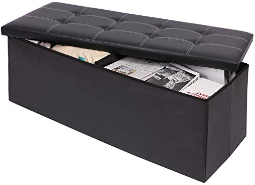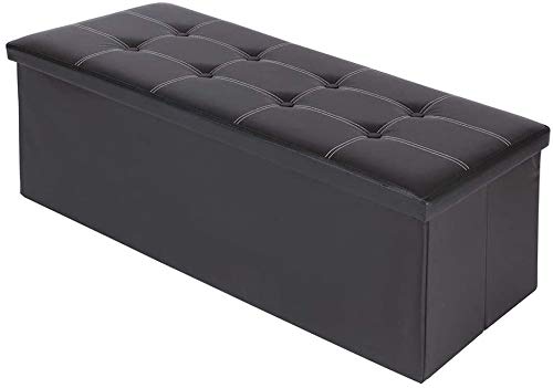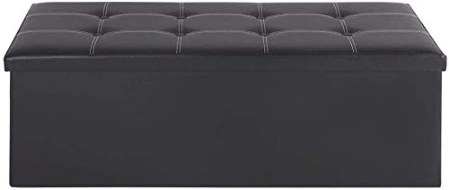 BAKAJI Pouf Cubo Poggiapiedi Sgabello Contenitore Cassapanca Pieghevole in ecopelle imbottito Nero 114 x 40 x 40 cm, con divisorio interno